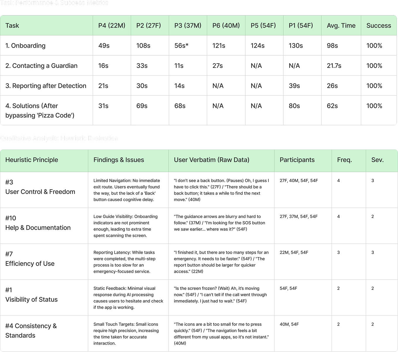 During each session, I watched how participants used the product and how easily they finished tasks. When they struggled or failed, I asked short follow-up questions to understand what made the tasks difficult.