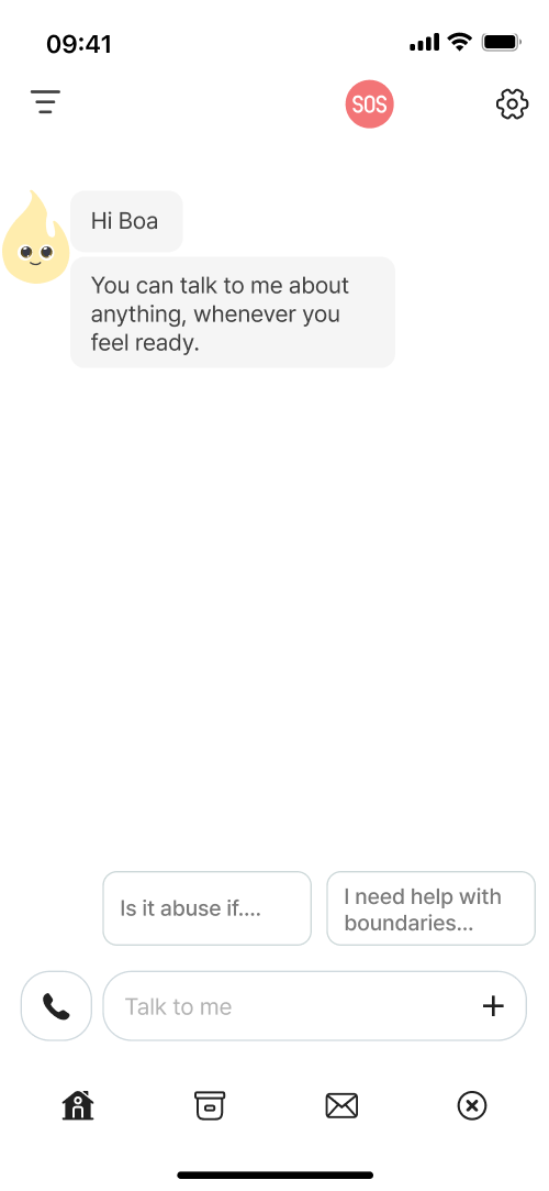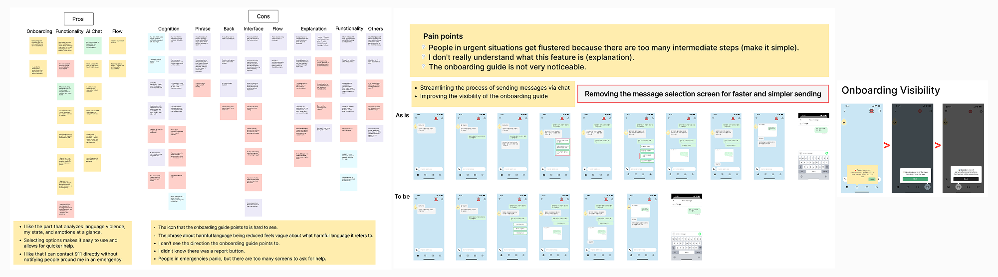 Since not every problem can be solved at once, I focused on the most essential functions: detecting verbal abuse, sending secret signals, and enabling safe messaging. Within limited time and resources, I learned how to streamline key user flows and guide important actions naturally.