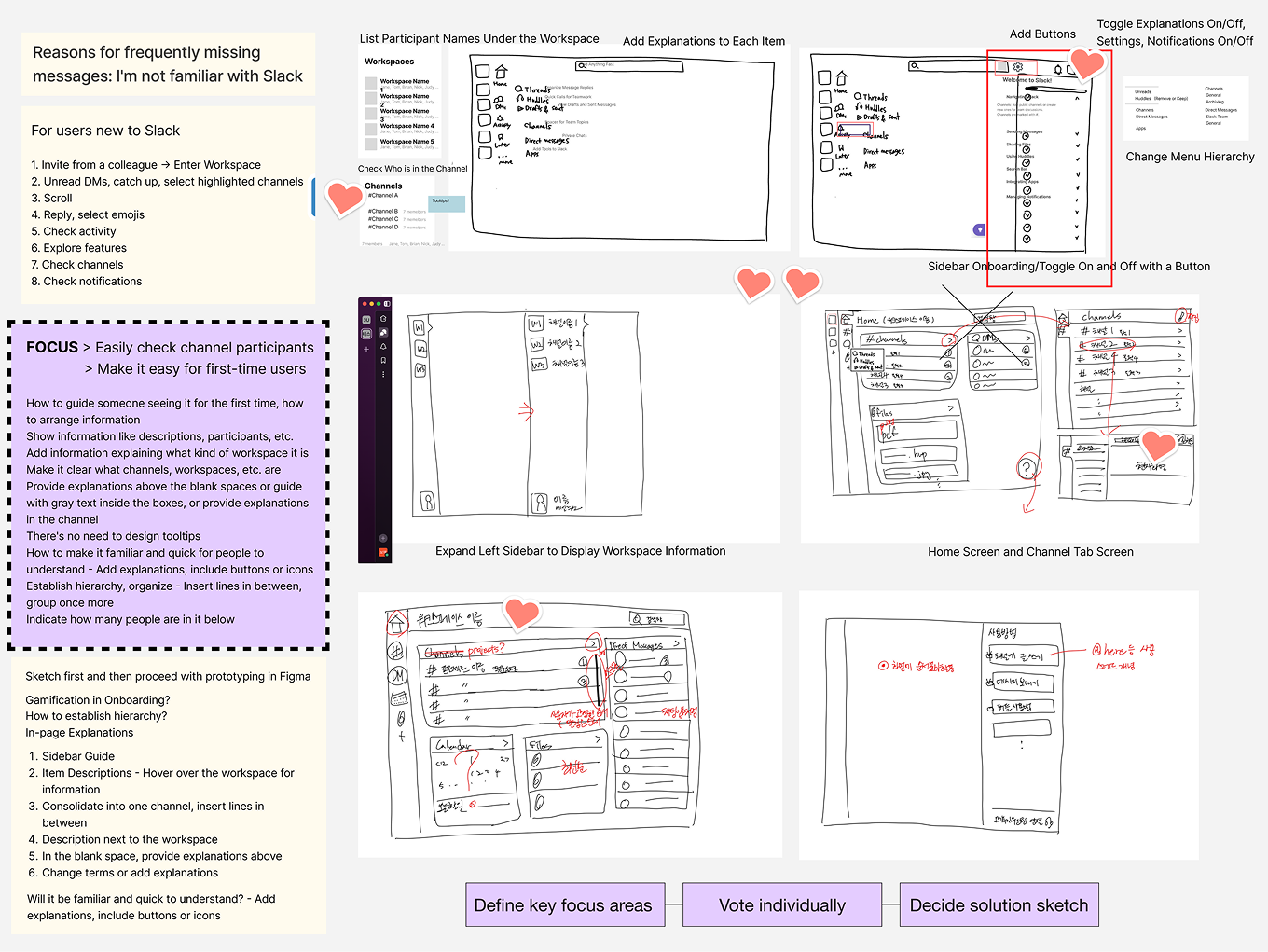 We asked if showing only key information first could reduce confusion. We compared ideas with sketches and Crazy 8s to choose clearer ways to manage notifications and channels.